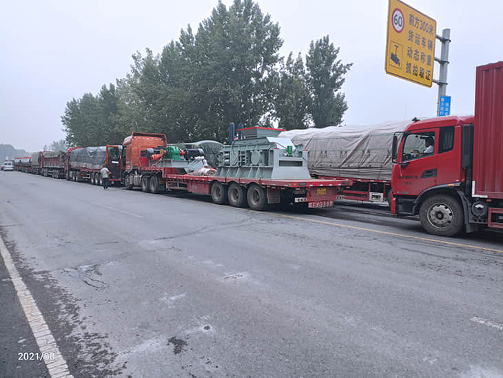 輥體φ1×1.2m的雙輥破碎機開始發貨運輸