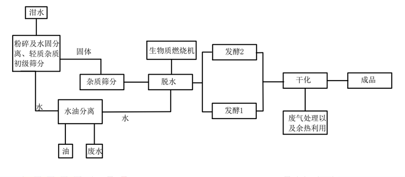 餐飲垃圾烘干機飼料化成套設備,包括人工分揀、固液分離、粉碎、油水分離、固體發酵、干燥及滅菌、粉碎、打包、添加飼料添加劑和造粒等步驟,餐飲垃圾烘干機由筒體、前輥圈、后輥圈、齒輪、擋輥、拖輥、小齒輪、出料部分、揚板、減速機、電機、熱風道、進料溜槽、爐體等部分組成。